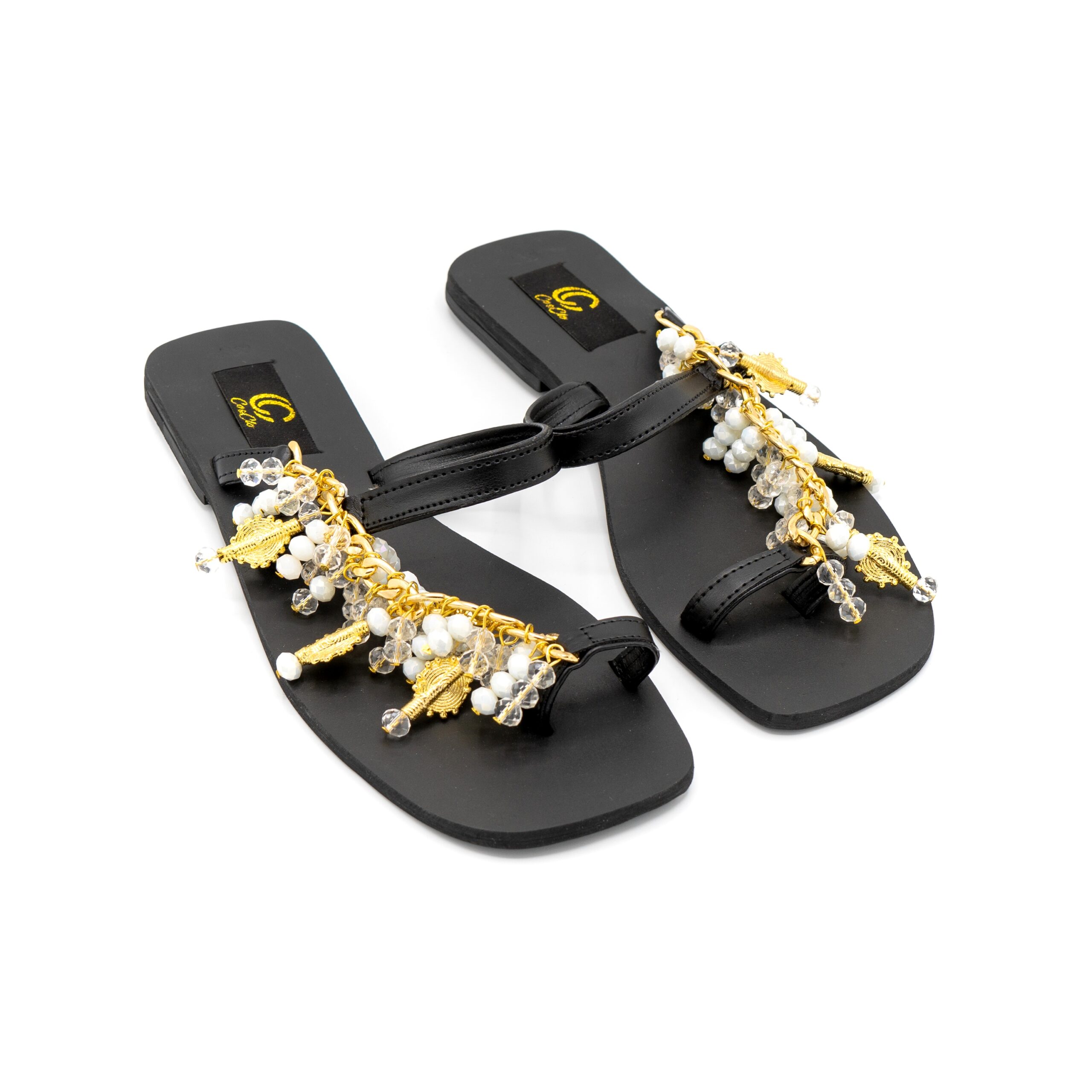 35000 CFAMinimalistes et précieuses à la fois, ces sandales plates noires subliment chaque pas avec raffinement. Leur design épuré est rehaussé d’une délicate chaîne dorée ornée de perles blanches et de cristaux translucides, apportant lumière et sophistication à l’ensemble. La bride centrale assure un maintien confortable tandis que la semelle plate garantit une démarche légère et […]