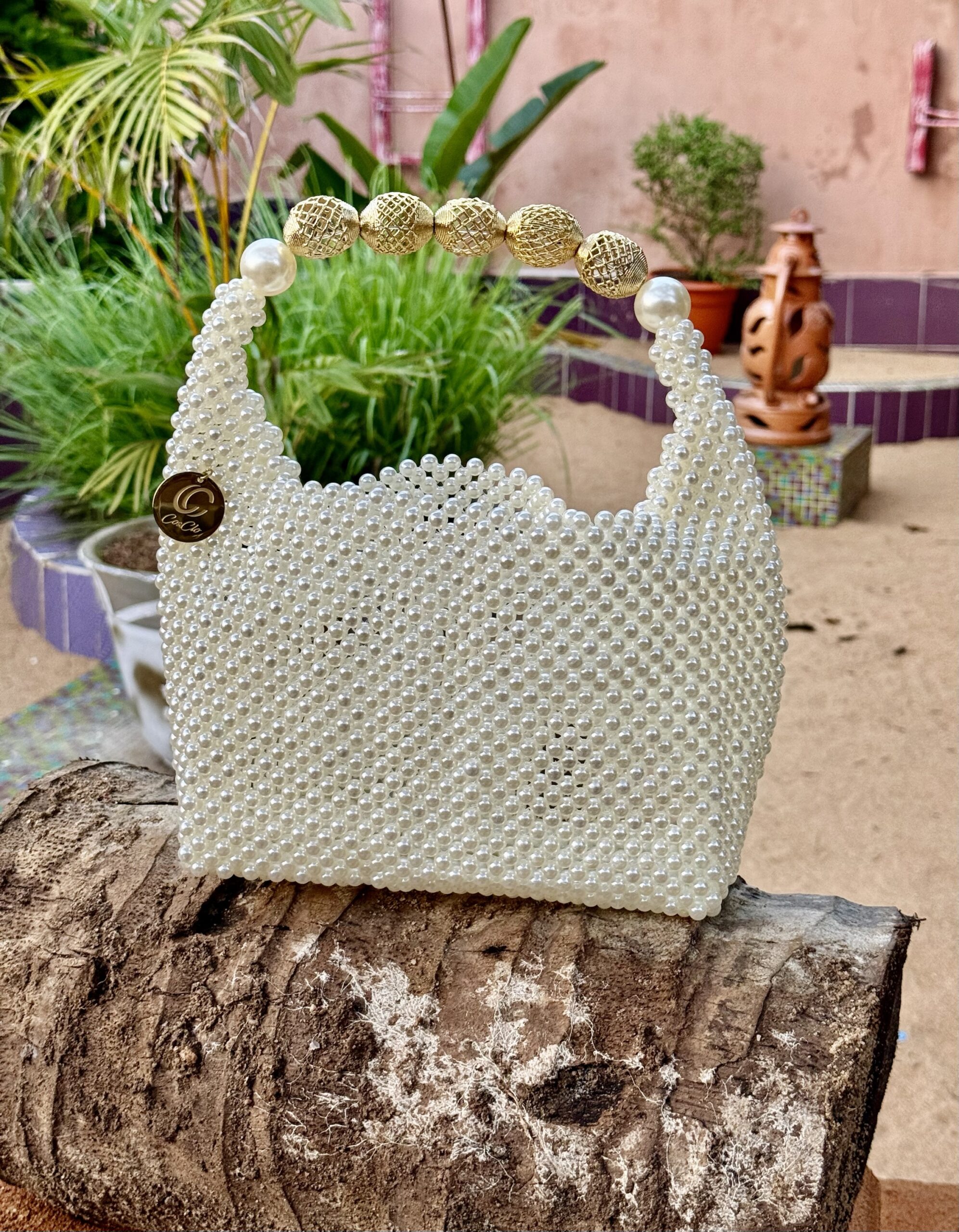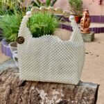 Sac Perlé blanc anses dorées